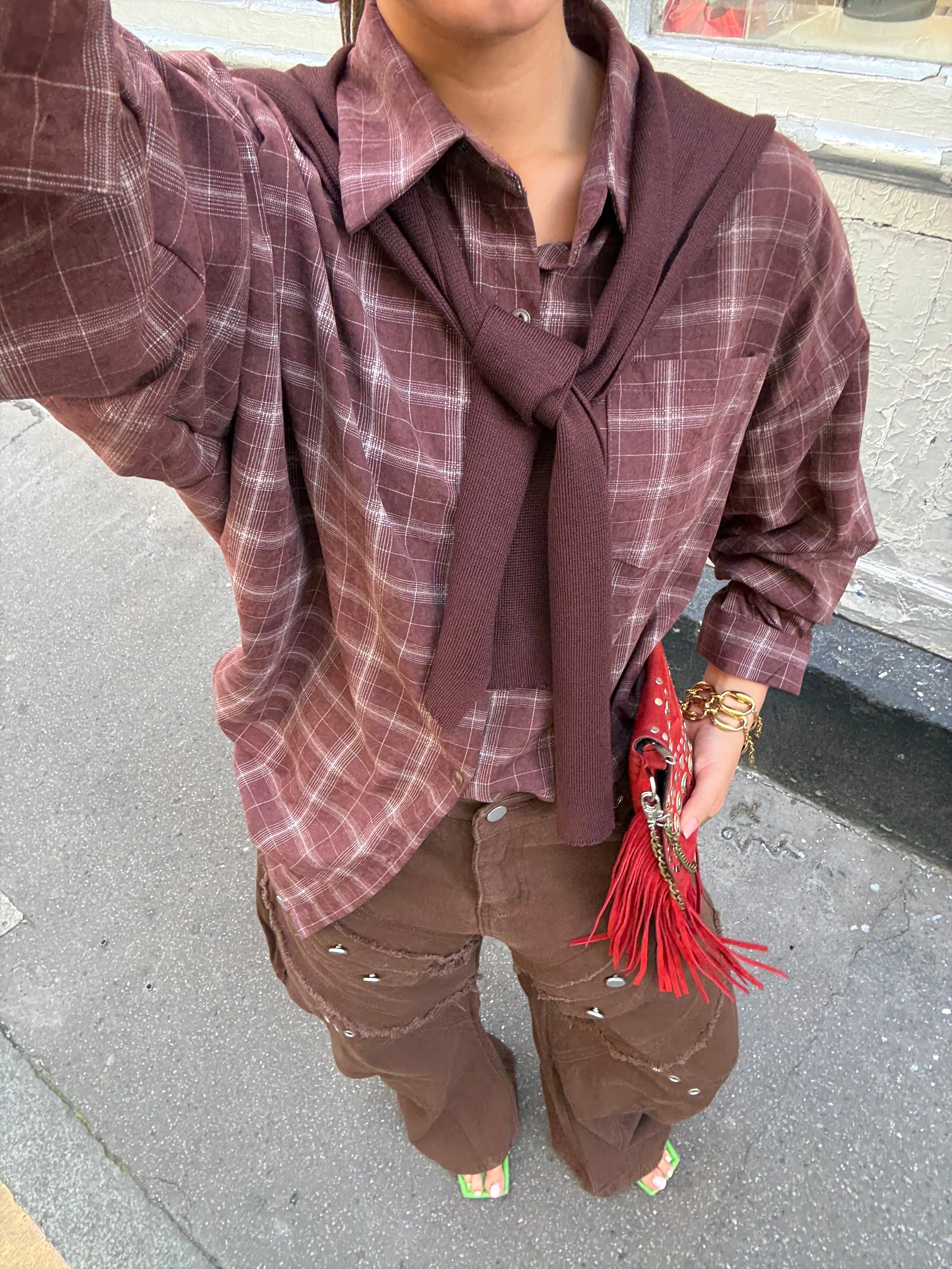 • Kleur: dark brown• Maat: S• Wasadvies: check altijd de wasinstructies op het label.• Model: 1.60 m lang en draagt hier maat S.