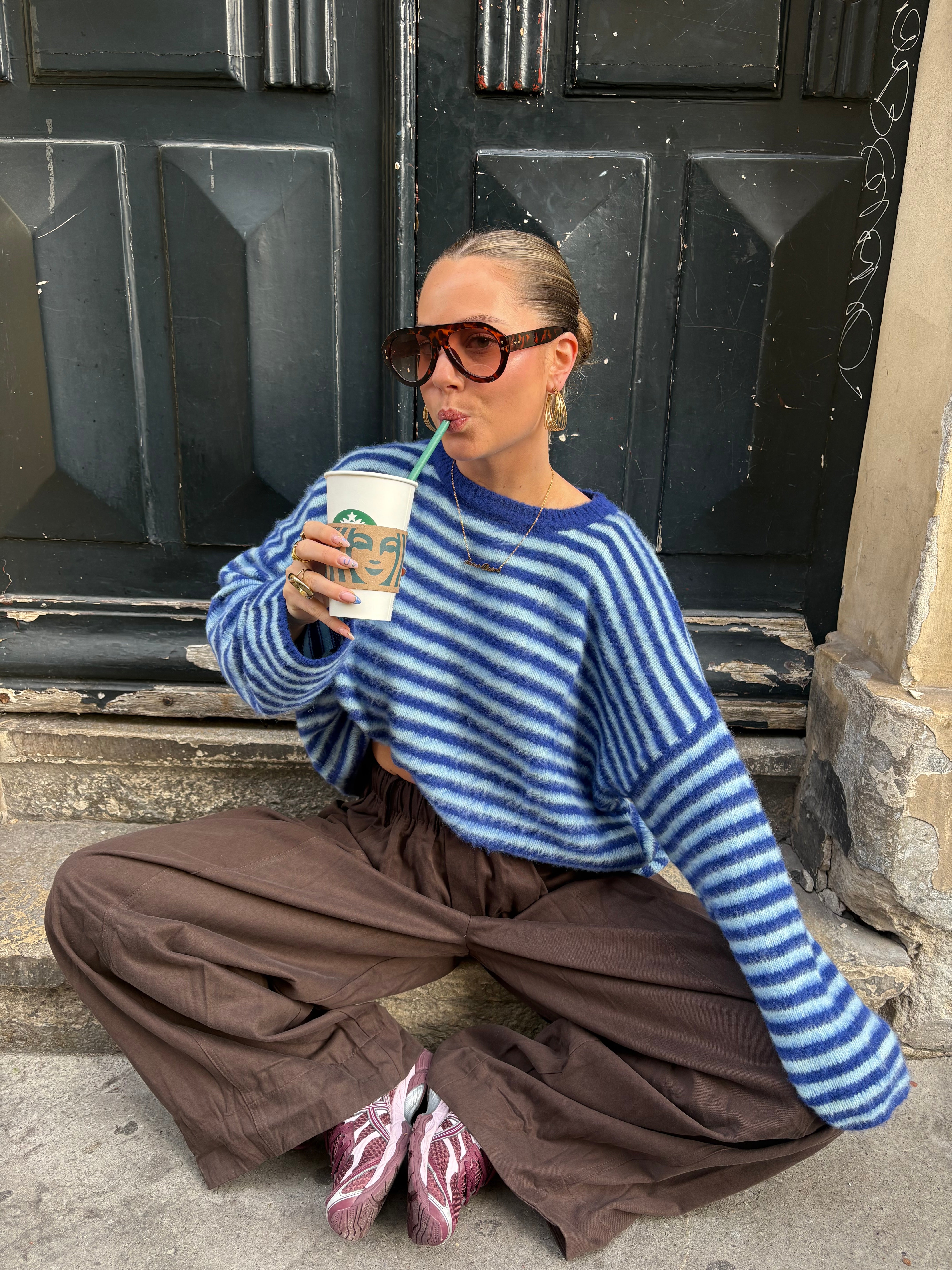 Pre-order wordt binnen een week verzonden. Gestreepte knit blauw/licht blauw