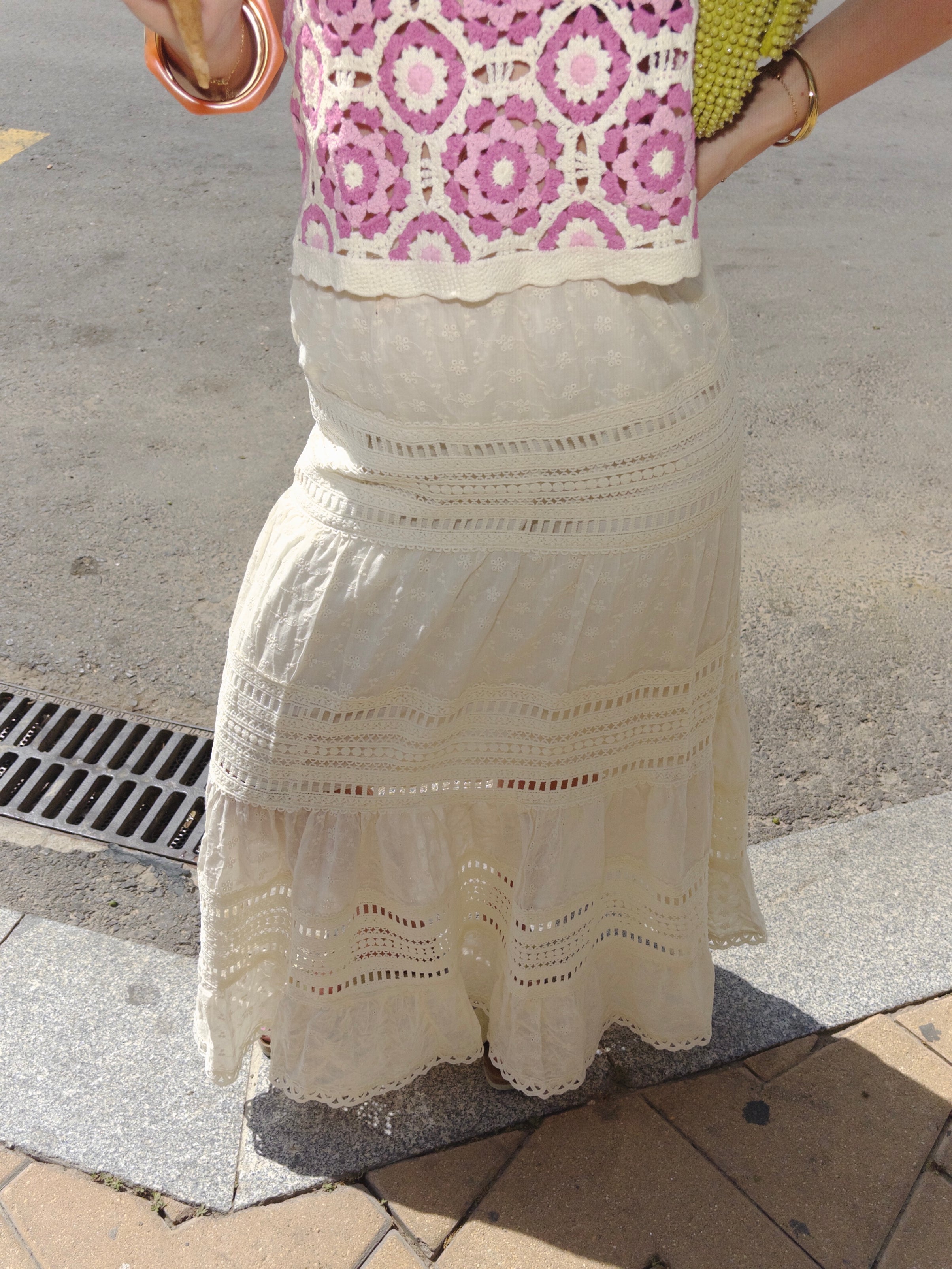 • Kleur: off white • Maat: S/M/L• Wasadvies: check altijd de wasinstructies op het label. • Model is 1.63m lang en draagt hier maat S.