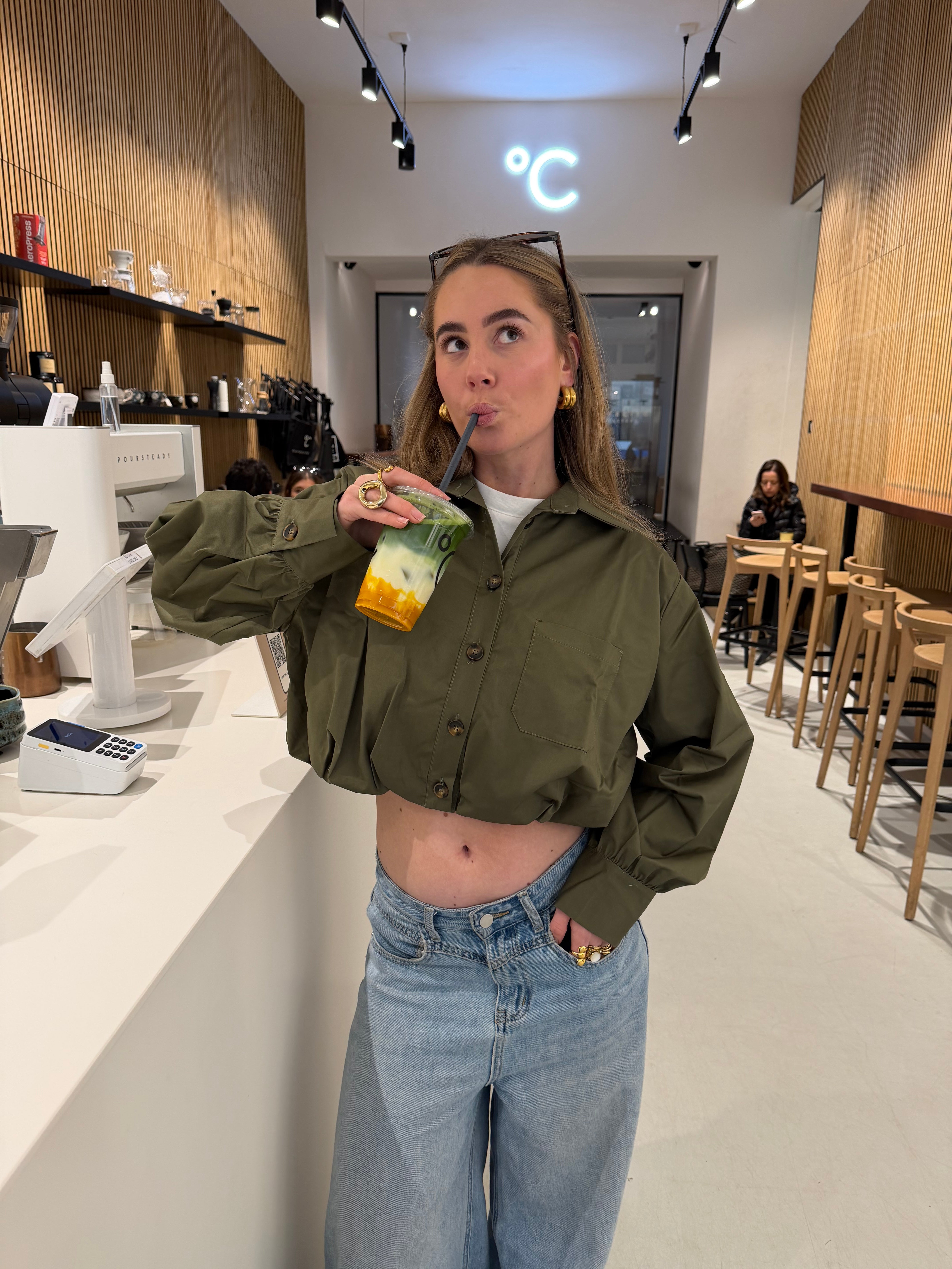 Groene blouse.