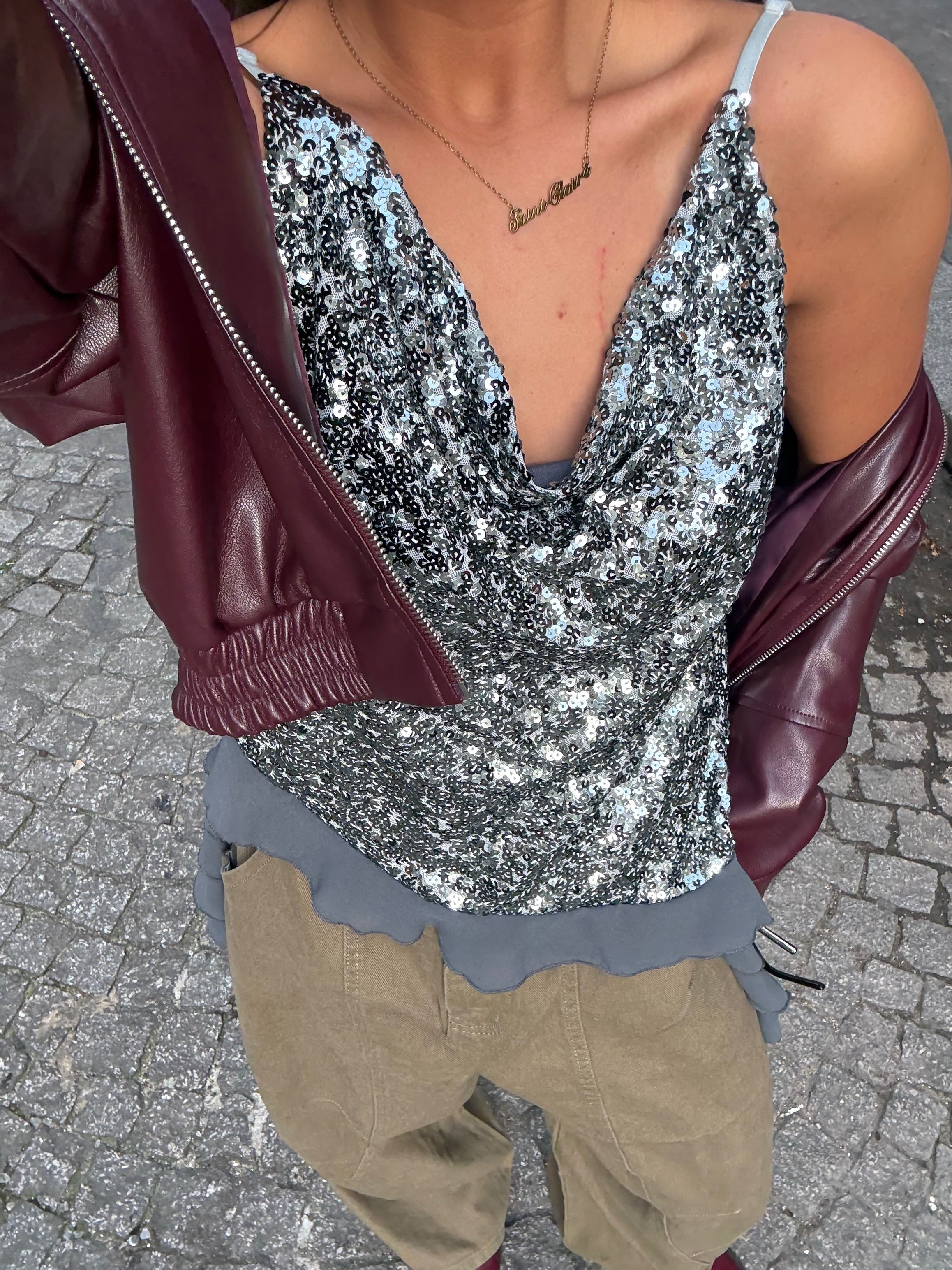 Silver pailletten top.