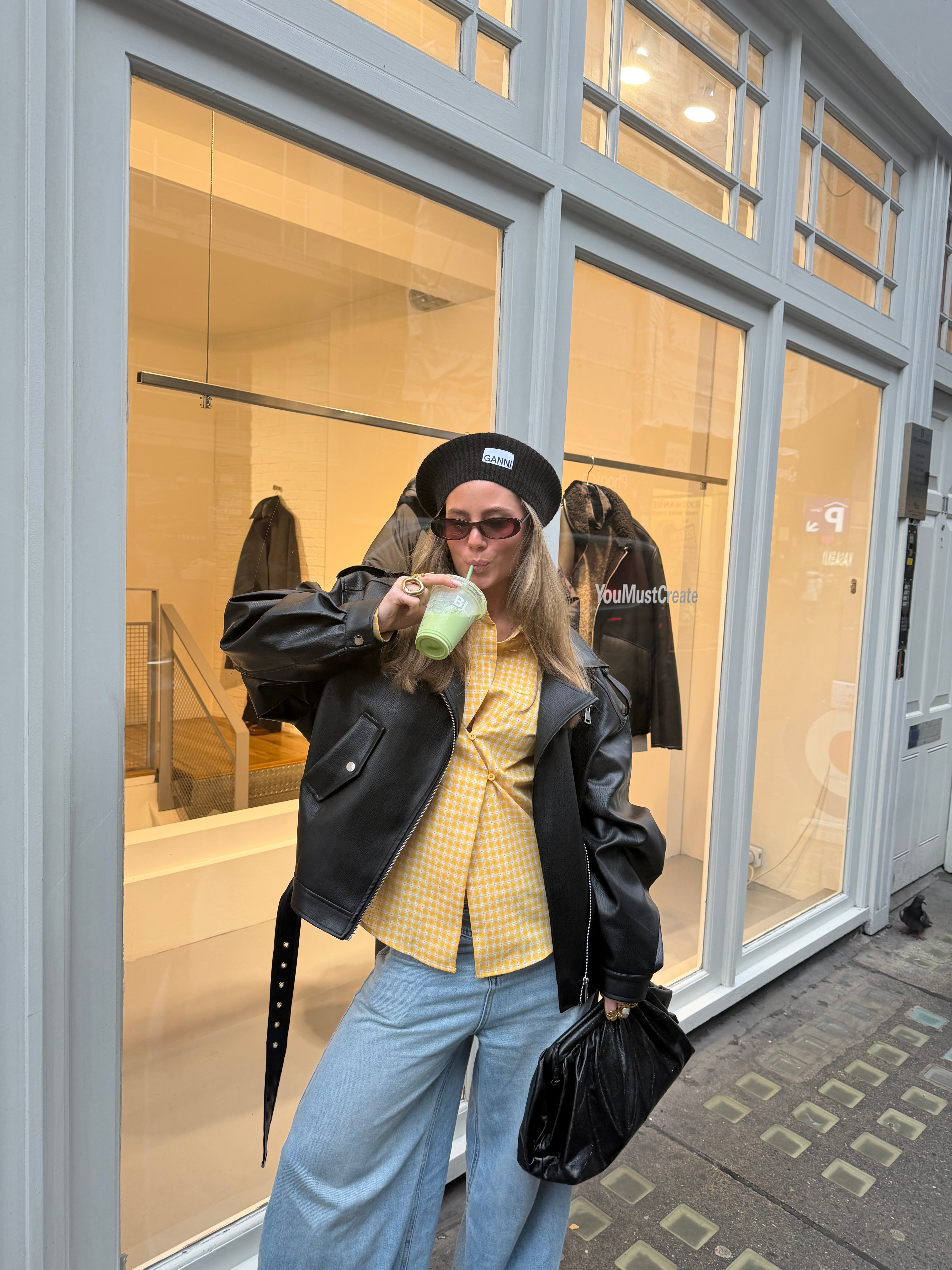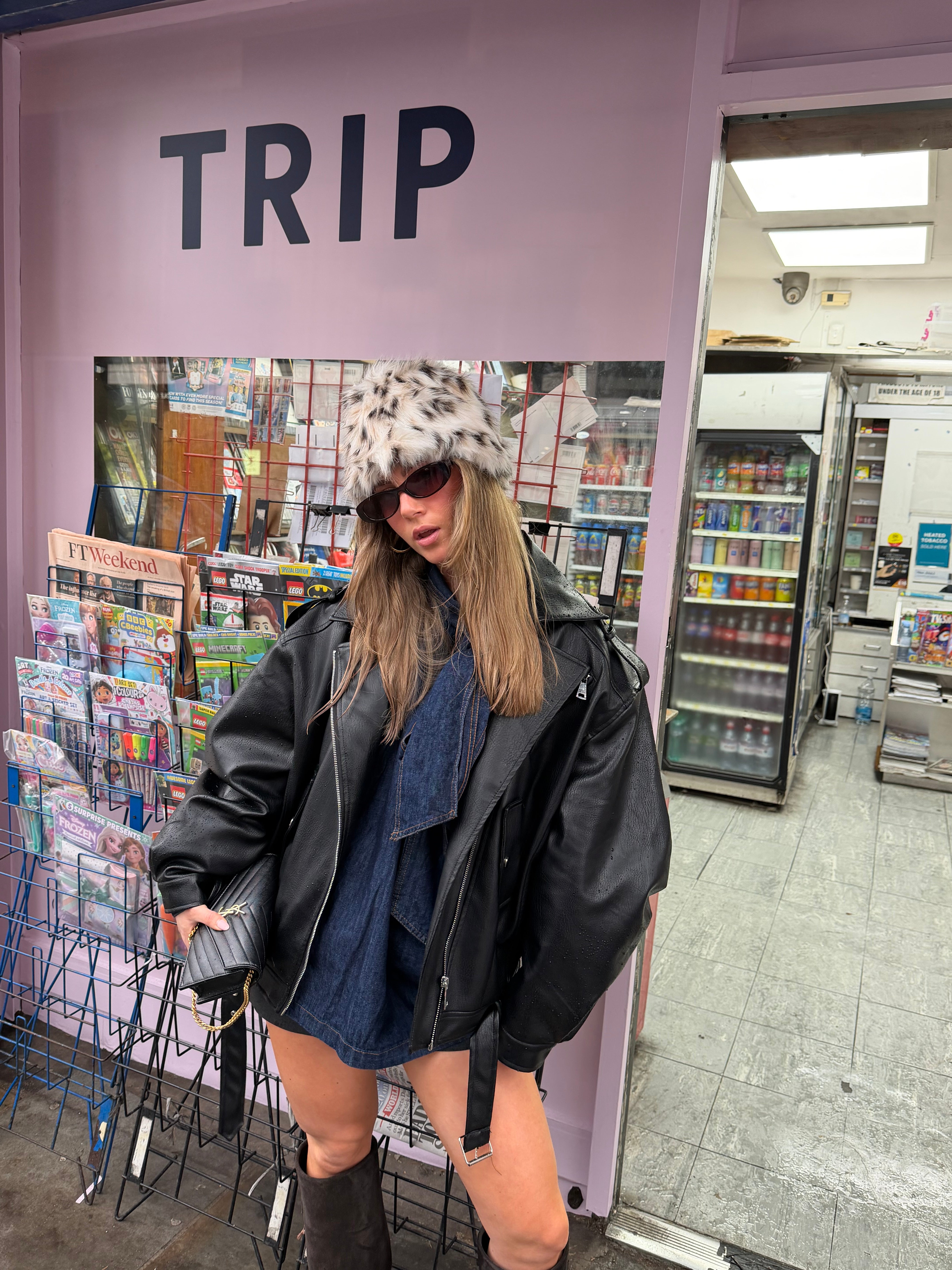 This oversized faux leather jacket features large sleeves and a trendy belt at the bottom, adding both style and structure. Perfect for a bold, relaxed look.